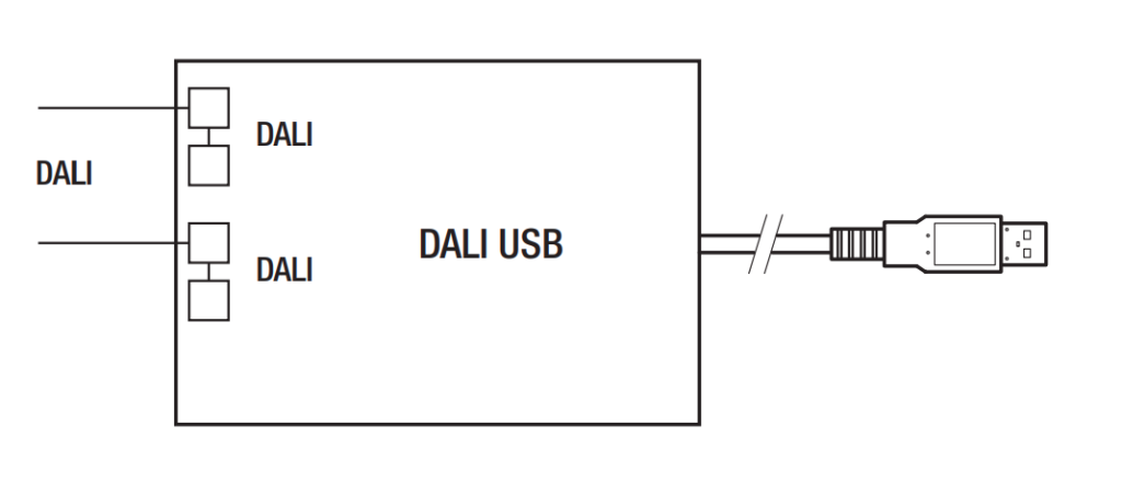 - DALI USB převodník nesmí být připojený přímo k elektrické síti 230V.