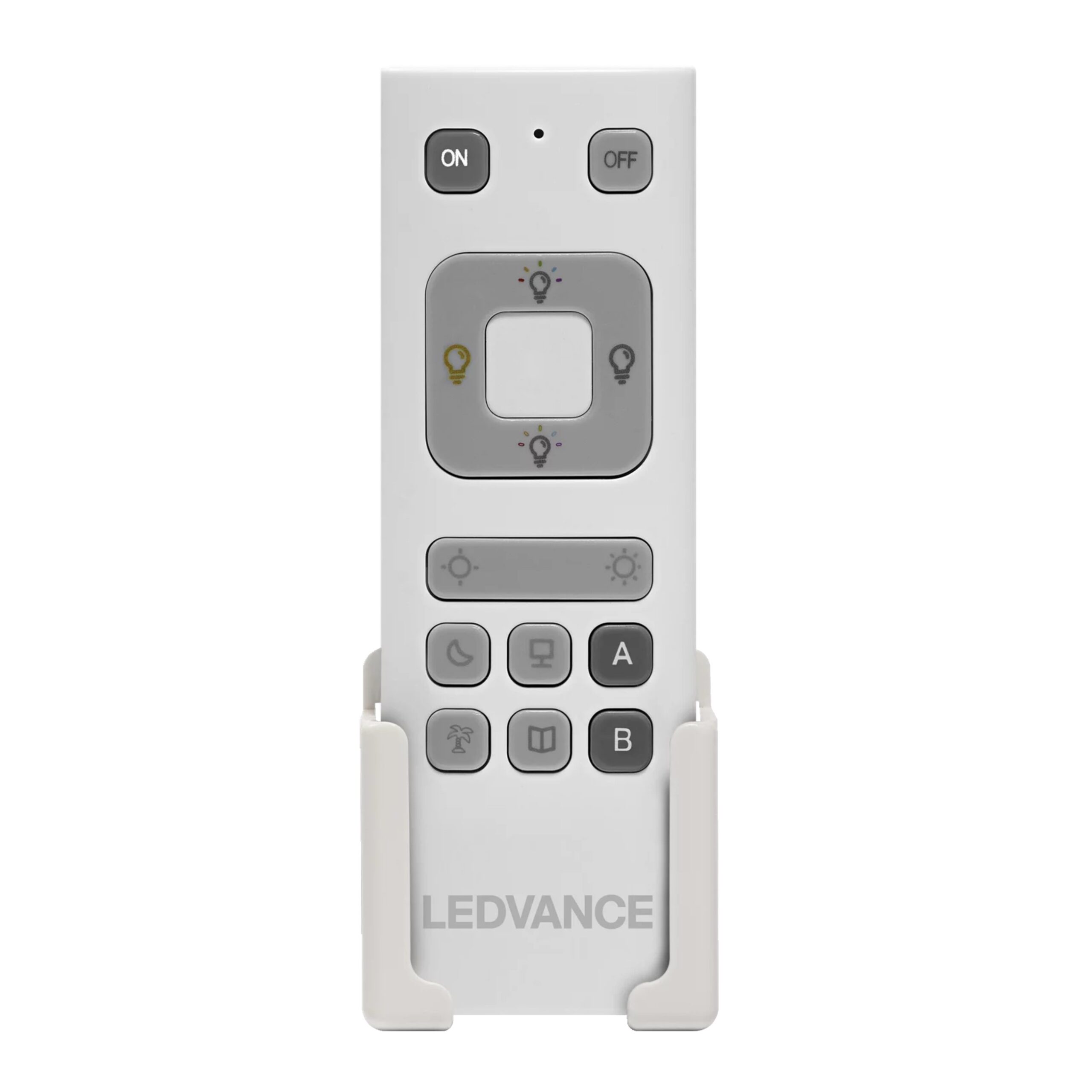 K ovládání svítidel v aplikaci LEDVANCE SMART + WiFi je zapotřebí chytrý telefon, tablet nebo tento dálkový ovladač. Tyto způsoby ovládání nám přináší další možnosti – například přirozené probouzení s postupným rozsvěcováním světla nebo nastavení automatického režimu osvětlení celé místnosti. Sepsali jsme pro vás postup pro použití aplikace LEDVANCE SMART + WiFi včetně videí.