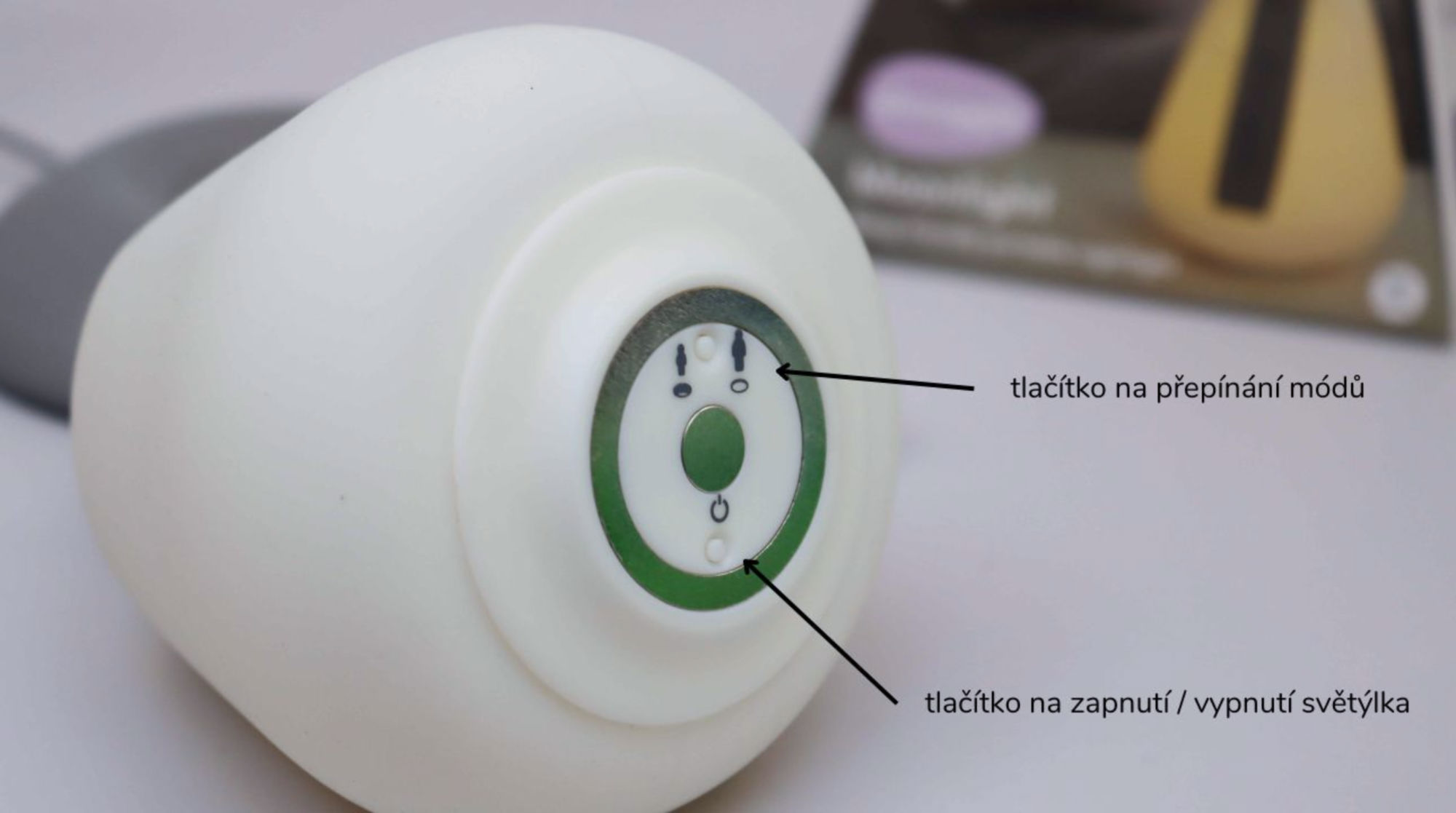 Výhodou je také to, že nabízí dva druhy režimů – rodičovský a dětský. Přepínat je můžete na spodní straně svítidla, například pomocí tužky. V rodičovském režimu se světýlko rozsvítí jen po zatřesení nebo přetočení. Následně zůstane svítit na dané úrovni jasu a po 40 minutách se samo zhasne. V dětském režimu svítí celou noc (dle údajů výrobce je maximální výdrž svítidla 10 hodin). Nejprve svítí plným jasem, po 20 minutách se jas sníží. V případě zatřesení nebo přetočení svítidla se tento cyklus spustí znovu. Pokud tedy máte doma dítě, které se bojí usínat ve tmě, Moonlight je ideální volbou.
