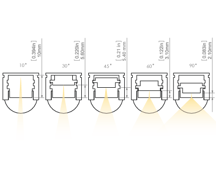 – při použití LED profilu REGULOR (B468+43) lze nastavit požadovaná šířku úhlu svitu