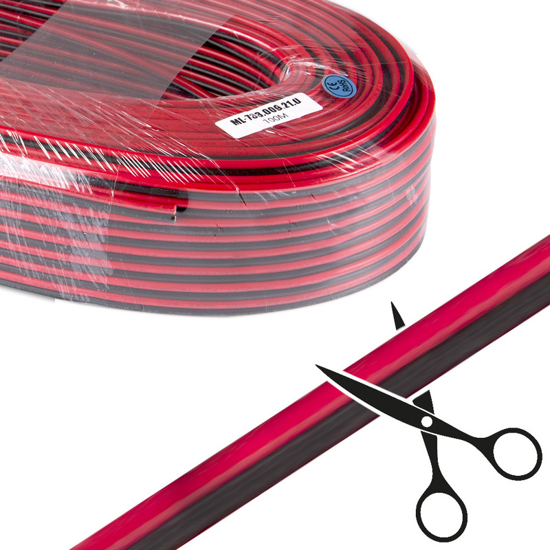 Dvoužilový kabel s vodiči AWG 16 obsahuje dva červeno-černé měděné vodiče o průřezu 1,3 mm2. Používá se k připojování a propojování jednobarevných LED pásků. Při zapojení volte maximální délku a vhodný průřez vodiče vždy s ohledem na přípustný úbytek napětí, který na vodiči vzniká průchodem proudu. Základní balení je délky 100 m. Uvedená cena je za jeden běžný metr.
