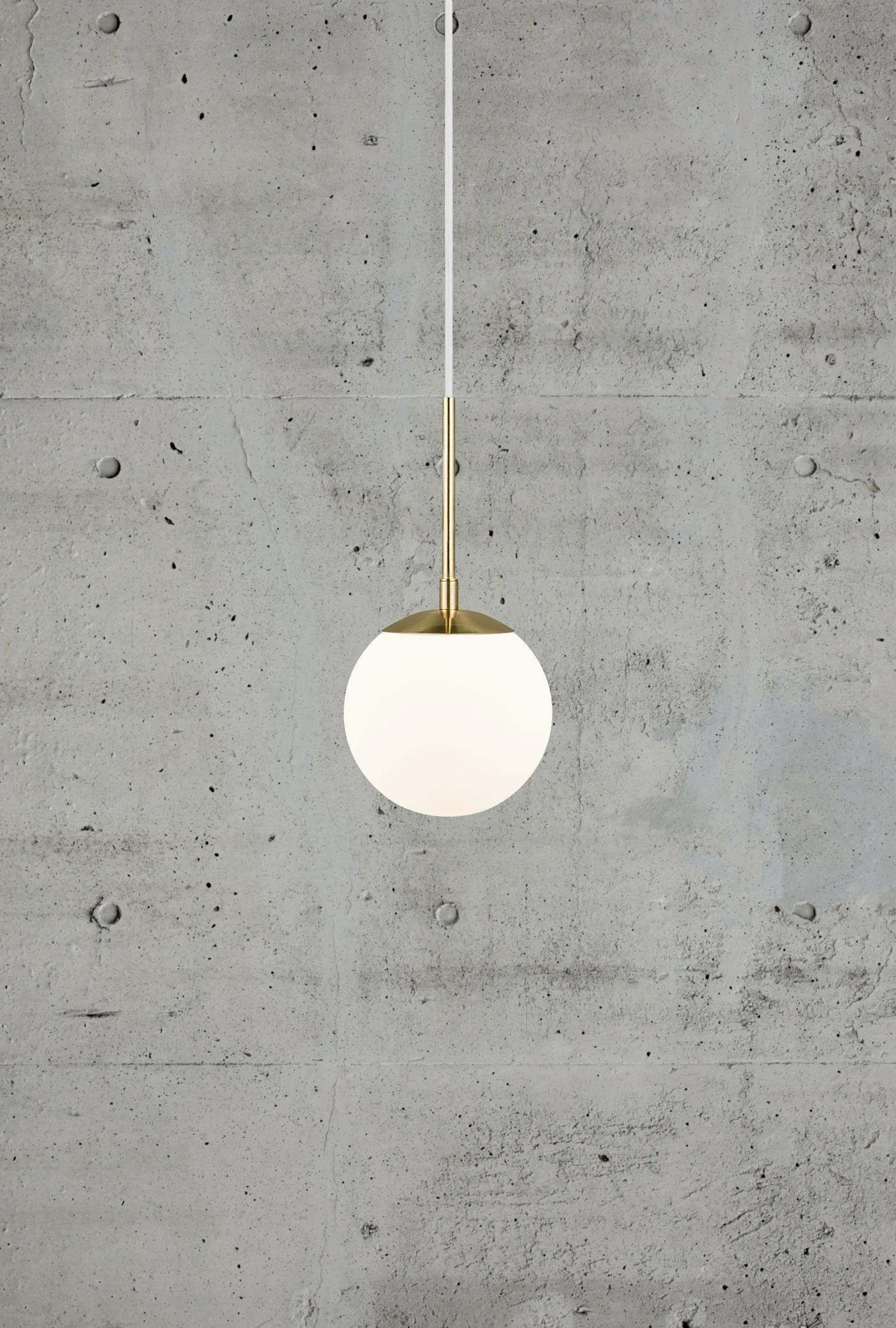 Lustr připomínající měsíc? Asi tak bych zjednodušeně popsala Grant. Matné, bílé, opálové foukané sklo s broušenou mosazí tak trochu zavání retrem a přitom luxusem.