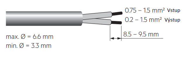 - 0,2 – 1,5mm² pro výstup k LED svítidlu (v závislosti na jeho příkonu).