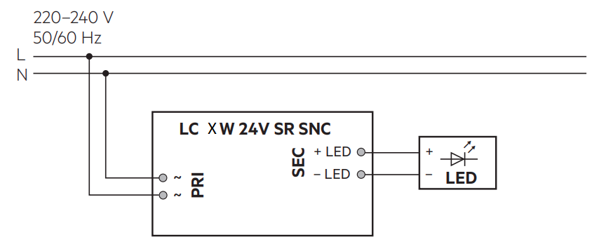 - Pozor na správné zapojení přívodních vodičů (L/N/PE 230V) a vývodů LED. Nesprávné zapojení nenávratně poškodí zdroj.