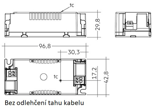 - Zdroj nemá na výstupní straně ochranu proti opačné polaritě svítidla. Špatná polarita na straně svítidla může poškodit svítidlo.
