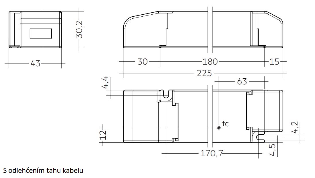 - Rozměry 225 x 43 x 30 mm