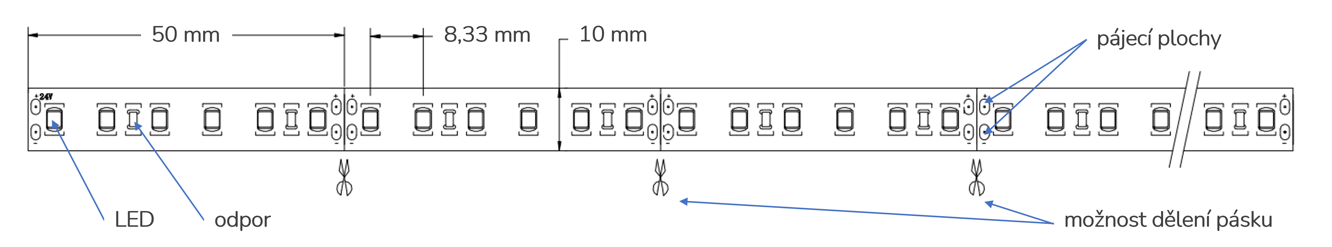 | Výkon na metr | 7,2 | 14,4 | 28,8 W/m |