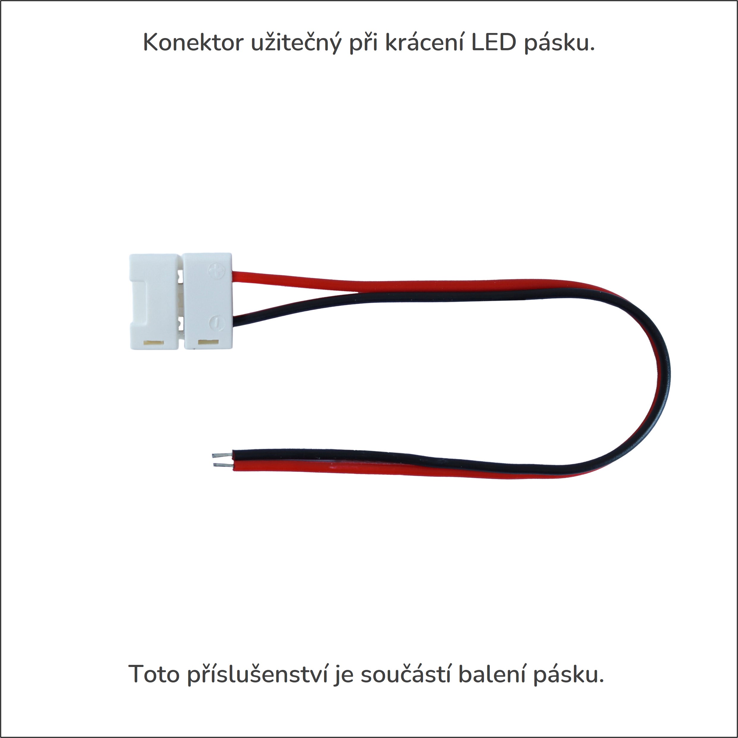 Ke každému LED pásku vám přiložíme do balení nový kabel s konektorem, který využijete pří zkrácení pásku.