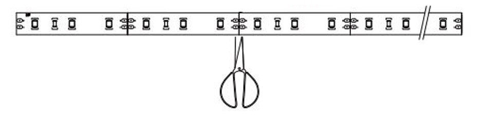 V případě, že nebude potřebovat využít celou délku LED pásku, máte možnost vytvoření více pásků o kratších rozměrech. Na každých 5 cm LED pásku je vyznačena dělící linie pro ustřižení. Pásek zkraťte na potřebnou délku ustřižením (například nůžkami) podél dělicí linie, která je na pásku vyznačena.