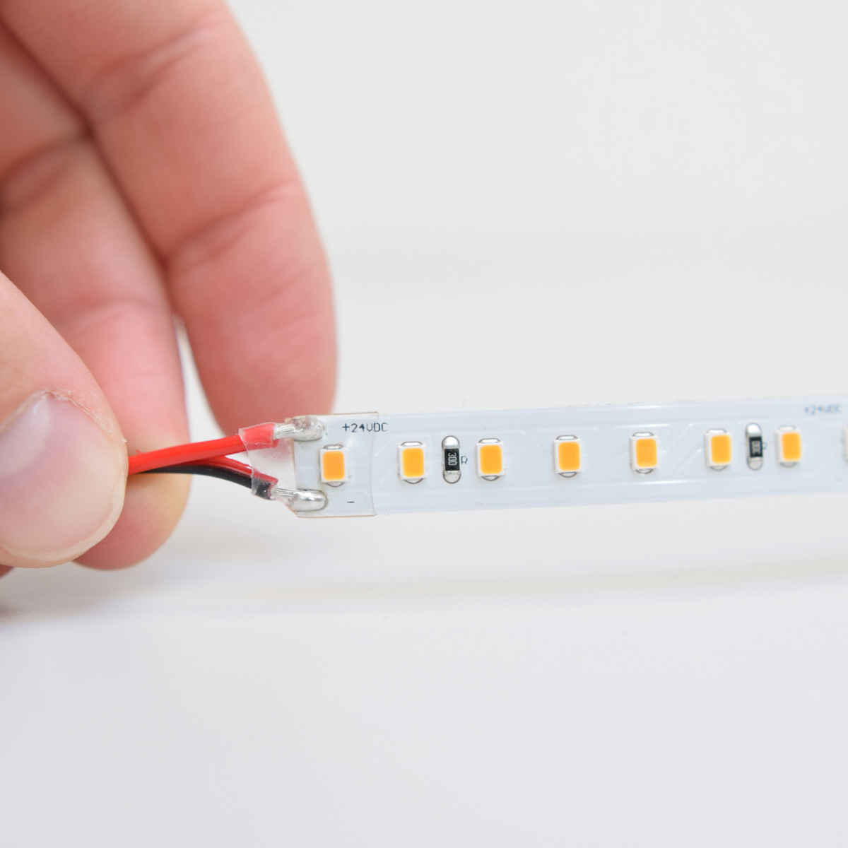 Každý LED pásek dodáváme s již vyvedenými kabely nebo konektorem, kterým kabely s LED páskem jednoduše propojíte. Díky tomu nebudete muset kabely k LED pásku složitě pájet. V případě delší linie pásku než je 6m doporučujeme zapojit LED pásku na obou koncích k napájecím zdrojům. Díky tomu nebude docházet k velkým úbytkům svítivosti v délce pásku. Potřebujete vytvořit delší LED pásek? Pro napojení dvou stejných LED pásků nebo vytvoření pravého úhlu použijte produkty z kategorie Spojky a konektory.