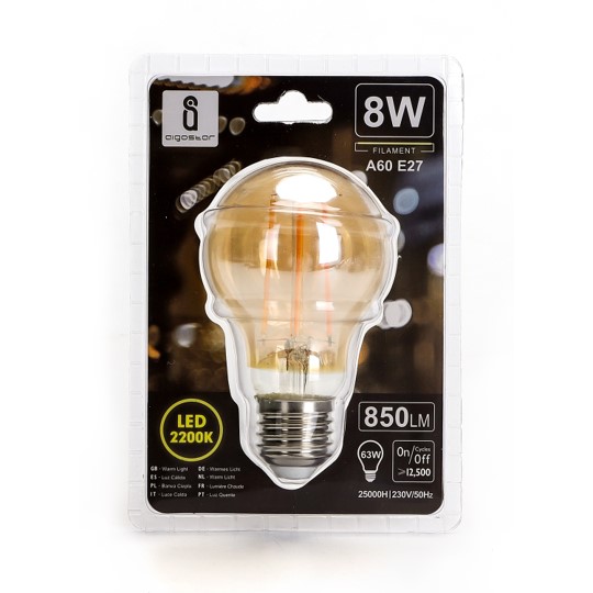 Čipy nazývané Filament dávají Aigostar žárovkám zcela unikátní vzhled. Jedná se o konstrukci, kdy jsou speciální COB LED diody umístěny podobně jako wolframové vlákno v klasické žárovce. Povrchová úprava skla žárovky navíc dodává teplejší odstín světla, který navozuje příjemnou atmosféru zapadajícího slunce, hořícího krbu nebo svíčky.