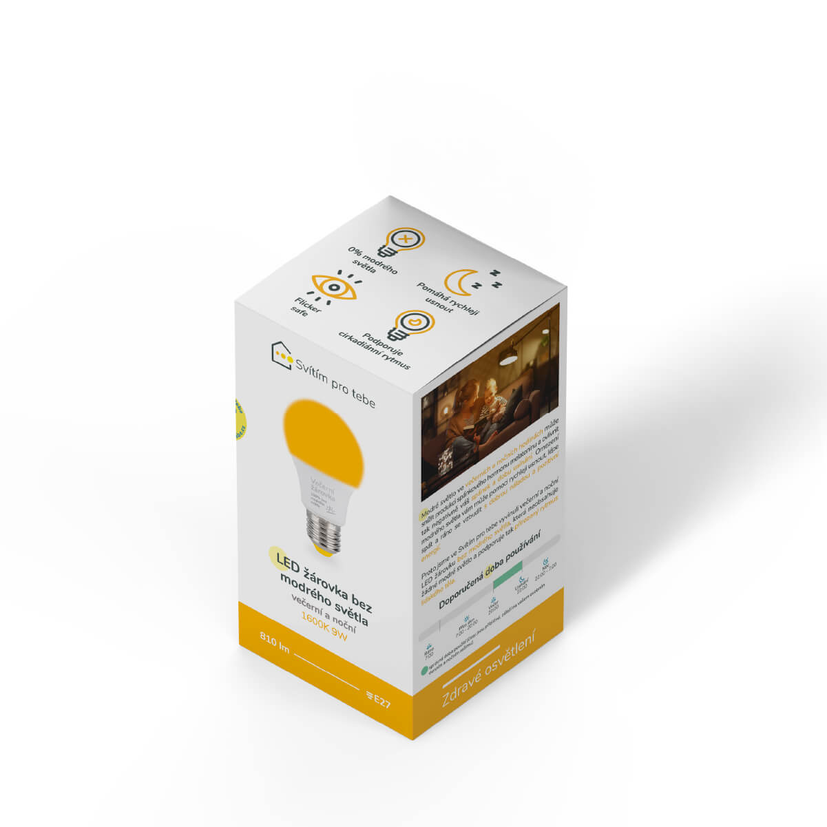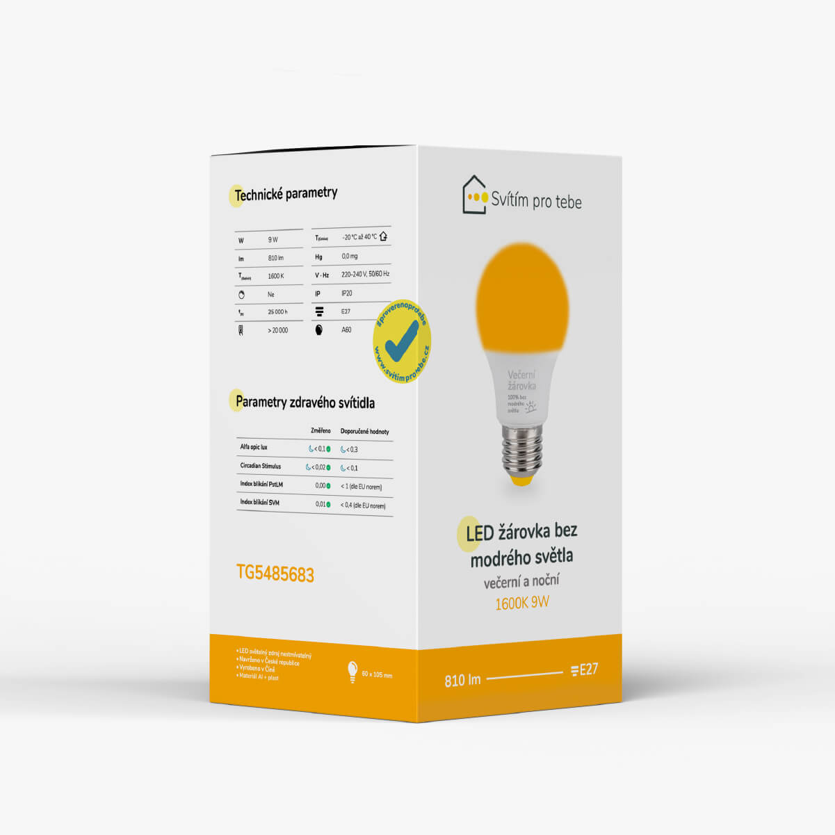 LED žárovku bez modrého světla jsme vyvinuli u nás doma, v České republice. Většina žárovek na trhu svítí teplotou barvy 2700 K a obsahuje modré světlo. To ale může být ve večerních a nočních hodinách škodlivé. A protože my v kvalitě zdravého osvětlení neradi děláme kompromisy, rozhodli jsme se vyvinout si vlastní žárovku 100% bez modrého světla, přesně podle našich představ. Velice nám záleželo na tom, aby splňovala všechna naše přísná kritéria. A proto vám nyní můžeme nabídnout LED žárovku pro večerní a noční svícení, za kterou si stoprocentně stojíme.