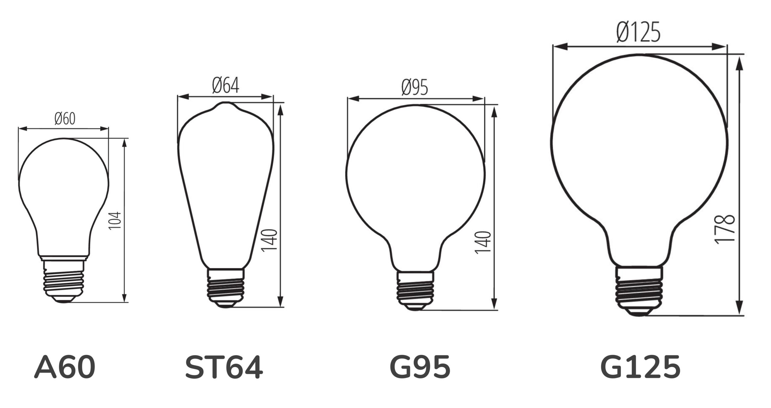 | Tvar žárovky | A60 | ST64 | G95 | G125 |