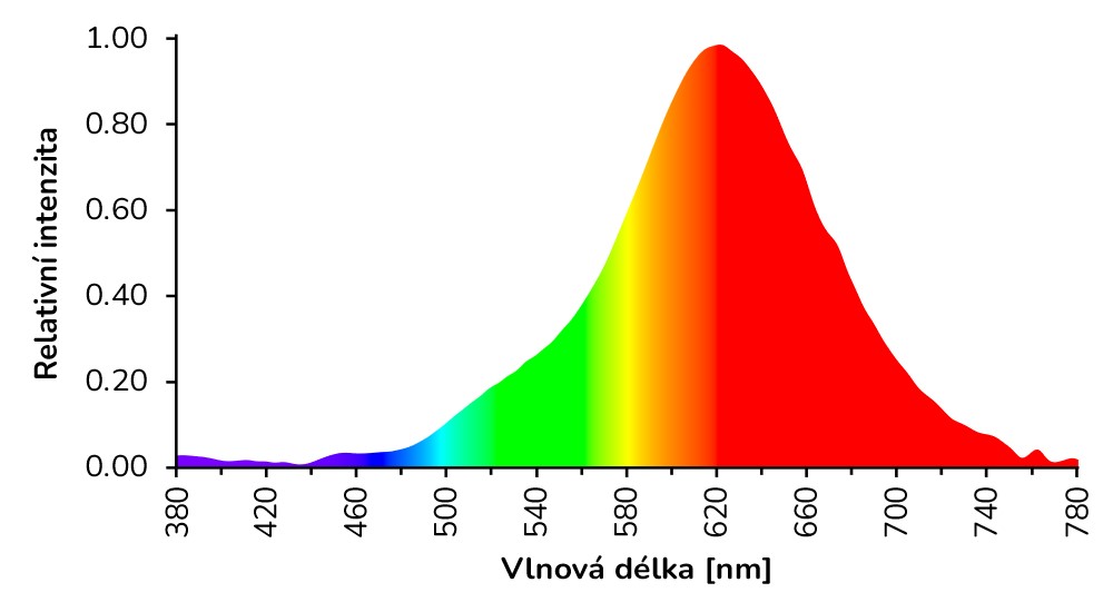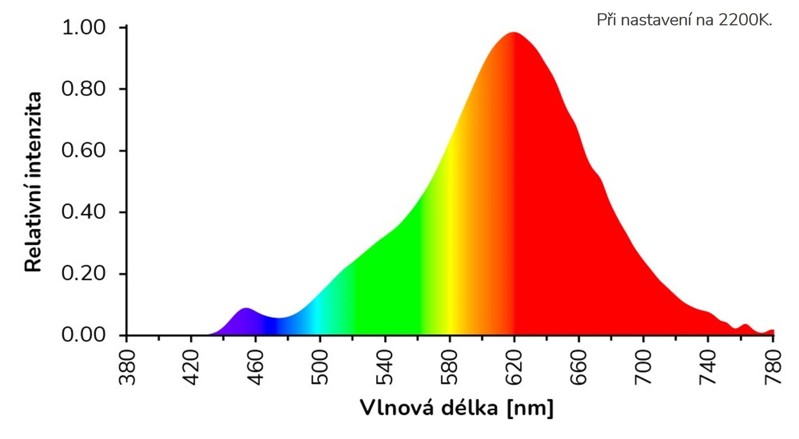 Spektrální složení vyzařovaného světla při 2200K