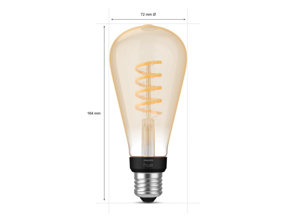 Tato LED žárovka vyčnívá propojením retro designu s moderními technologiemi. Pomocí aplikací můžete ovládat teplotu barev světla od 2200K do 4500K Číst vícea měnit intenzitu osvětlení. Změna teploty chromatičnosti barev má významný vliv pro organismus, kdy v průběhu dne potřebujeme studenou bílou barvu (4000K-4500K), zatímco na večer je vhodné svítit teplejšími barvami (2200K-2400K), díky kterým dosáhneme kvalitnějšího spánku. Funkce svítidla můžete ovládat přes aplikace Philips Hue Bluetooth nebo Philips Hue. K druhé aplikaci Philips Hue budete potřebovat připojovací můstek Hue Bridge.