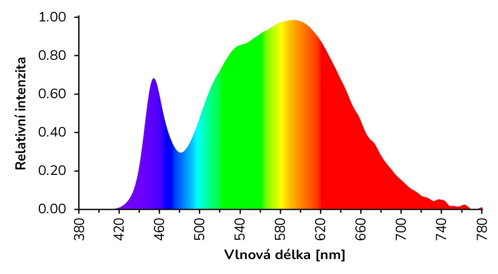 Spektrální složení vyzařovaného světla při 4500K