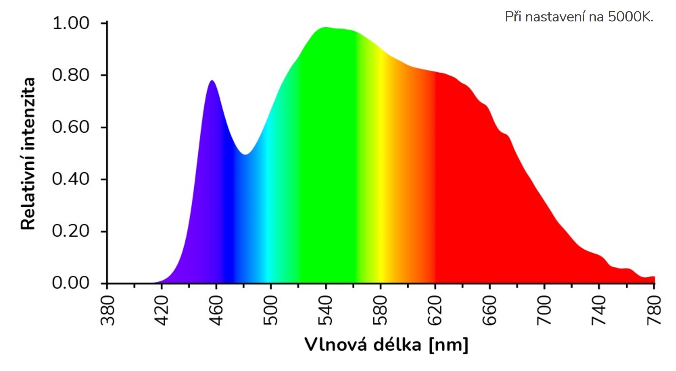 Spektrální složení vyzařovaného světla při teplotě 5000K