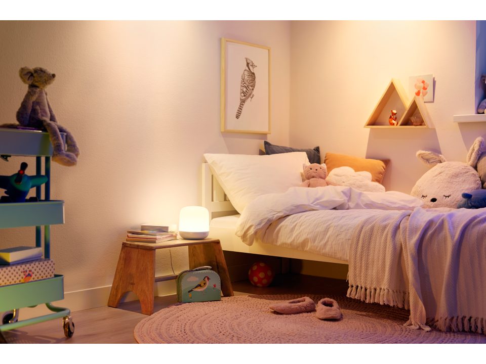 Lampu umístěte dostatečně daleko (minimálně dva metry) od dětské postýlky/postele, aby žárovka dítě neoslňovala.