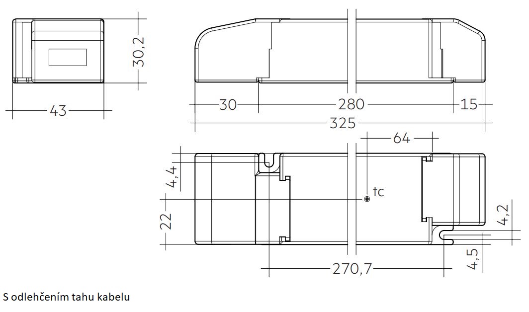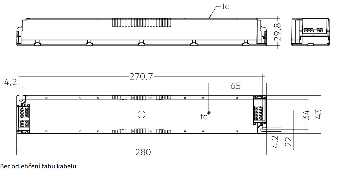 - Zdroj nemá na výstupní straně ochranu proti opačné polaritě svítidla. Špatná polarita na straně svítidla může poškodit svítidlo.