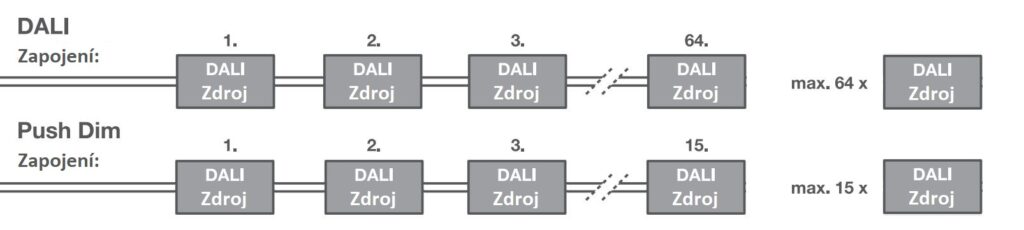 - Snadné ovládání díky funkci PushDIM nebo prostřednictvím sítě DALI-2