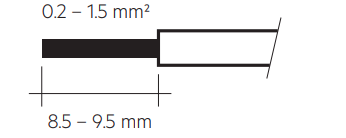 Pro optimální funkci pružinových svorek je délka odizolovaného konce vodiče 8,5 – 9,5mm.