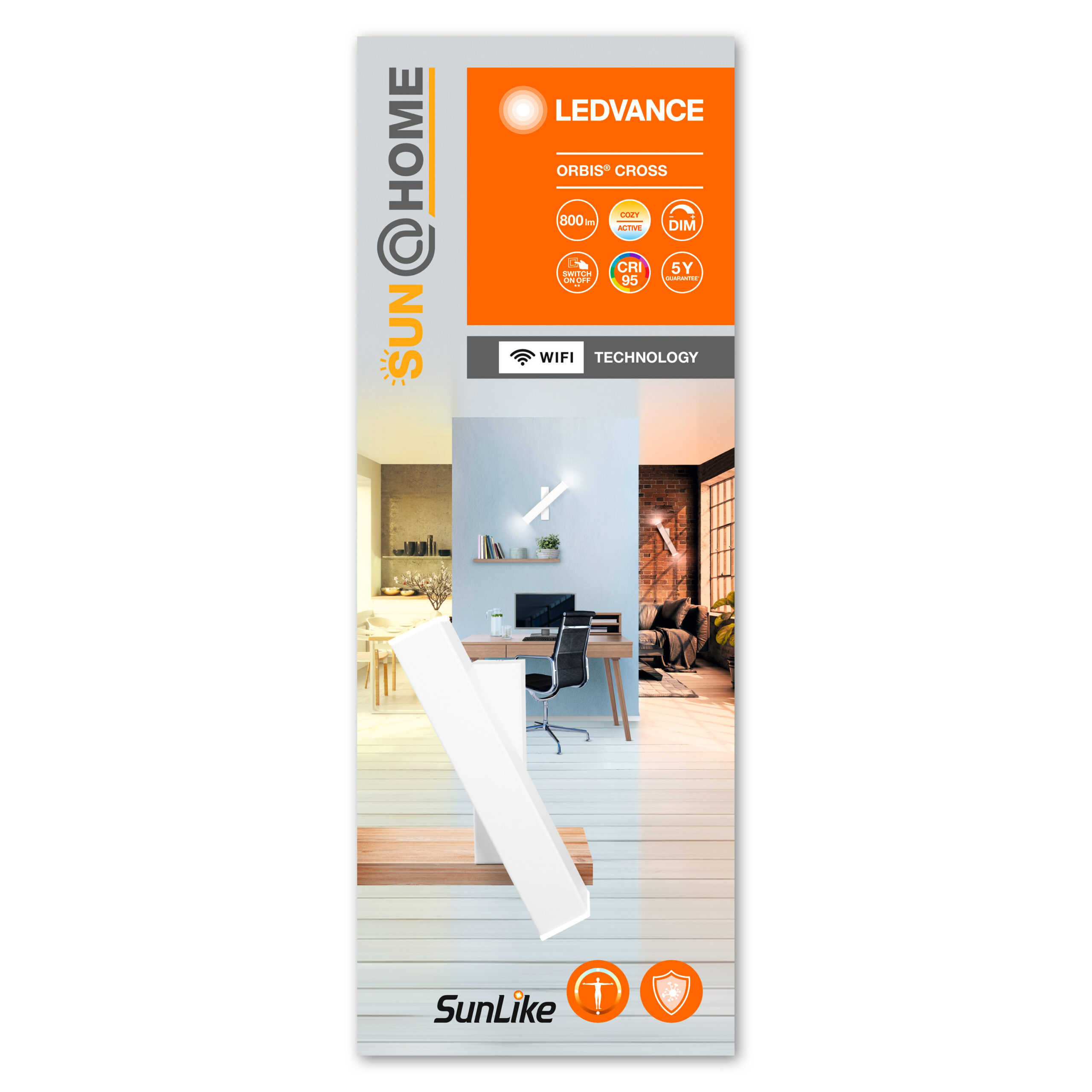 Nástěnné svítidlo ORBIS SUN@Home se hodí jako stylový doplněk každé domácnosti. Skládá se ze dvou částí ve tvaru kvádru, přičemž vnitřní Číst vícečást se montuje na zeď. Vnější část je otočná o 360 ° a má na obou koncích vyzařovací plochy. Nástěnné svítidlo, stejně jako všechna ostatní svítidla řady SUN@Home, mění teplotu barvy světla a intenzitu osvětlení během dne. Respektuje tím cirkadiánní hodiny lidského organismu. Ve večerních hodinách blokuje modré světlo, které narušuje kvalitu spánku. Funkce nástěnného svítidla ORBIS můžete měnit pomocí aplikace LEDVANCE SMART + WiFi.