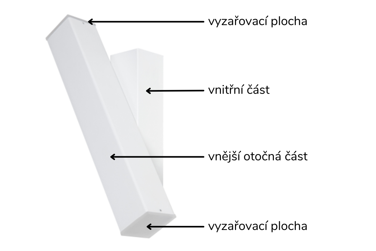 Pro výrobu svítidla se používá především kov. Z kovu se skládá celá konstrukce, pouze dvě vyzařovací plochy se vyrábějí ze skla. Svítidlo se skládá ze dvou částí ve tvaru kvádru, přičemž vnitřní část se montuje na stěnu. Vnější část můžete dle libosti otáčet o 360 ° a na obou koncích má vyzařovací plochu.