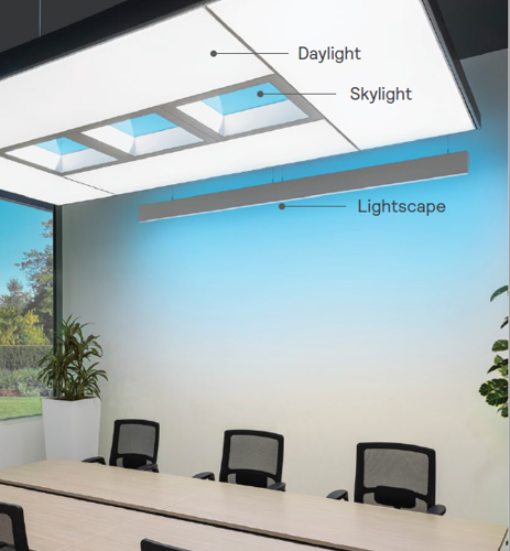 - Skylight (modrá obloha) – simuluje pohled na oblohu, díky čemuž vytváří i v malé místnosti pocit velkého prostoru a zároveň vás propojí s přírodou.