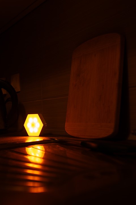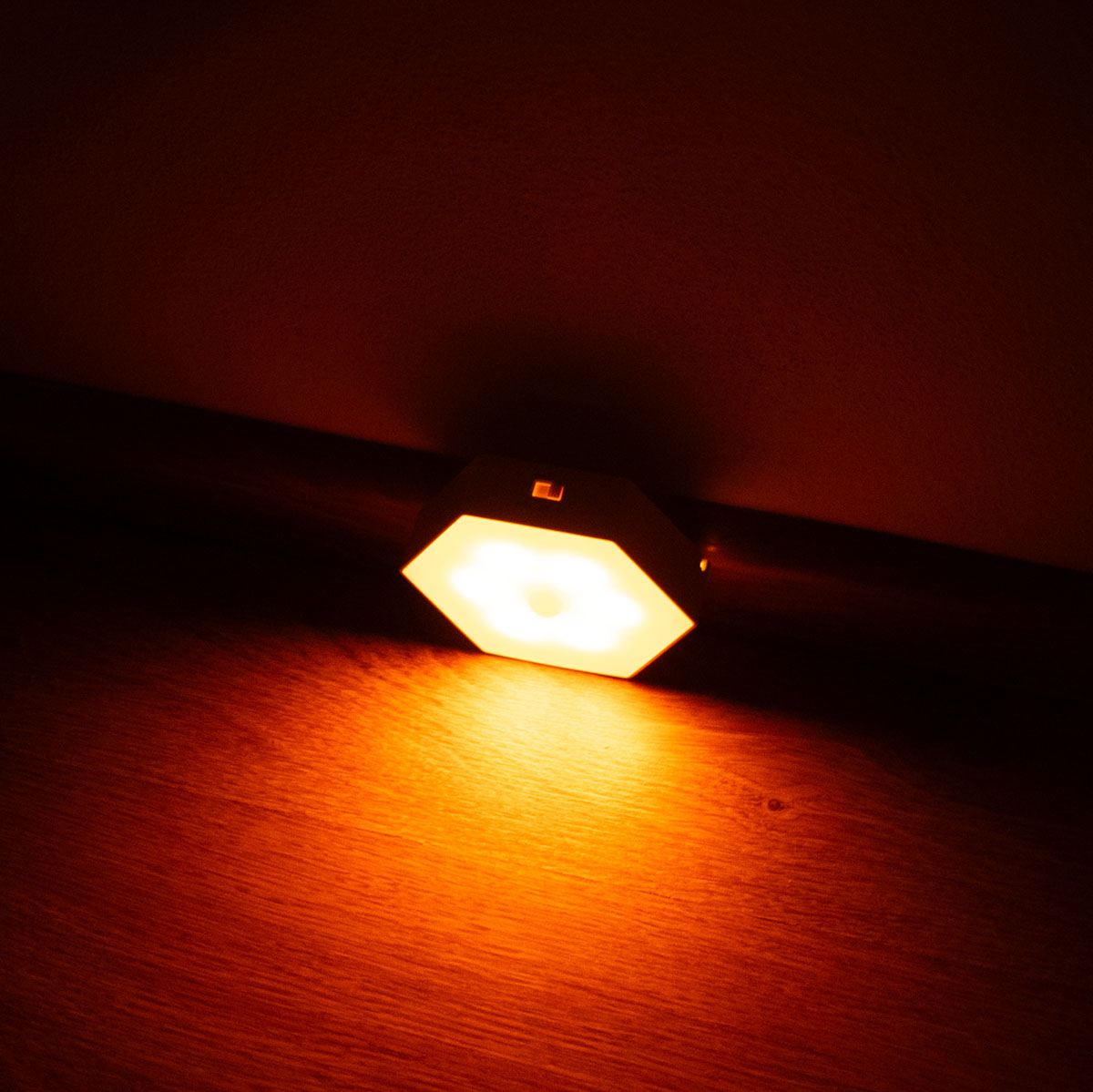 Noční světlo ORANŽOVKA má 2 senzory – pohybový a světelný. Nabízí 3 režimy svícení, které lze přepínat na boční straně svítidla.