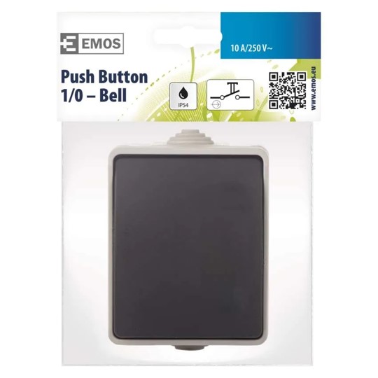 Ovladač tlačítkový zapínací 1/0, IP54 venkovní, šedo-černá barva