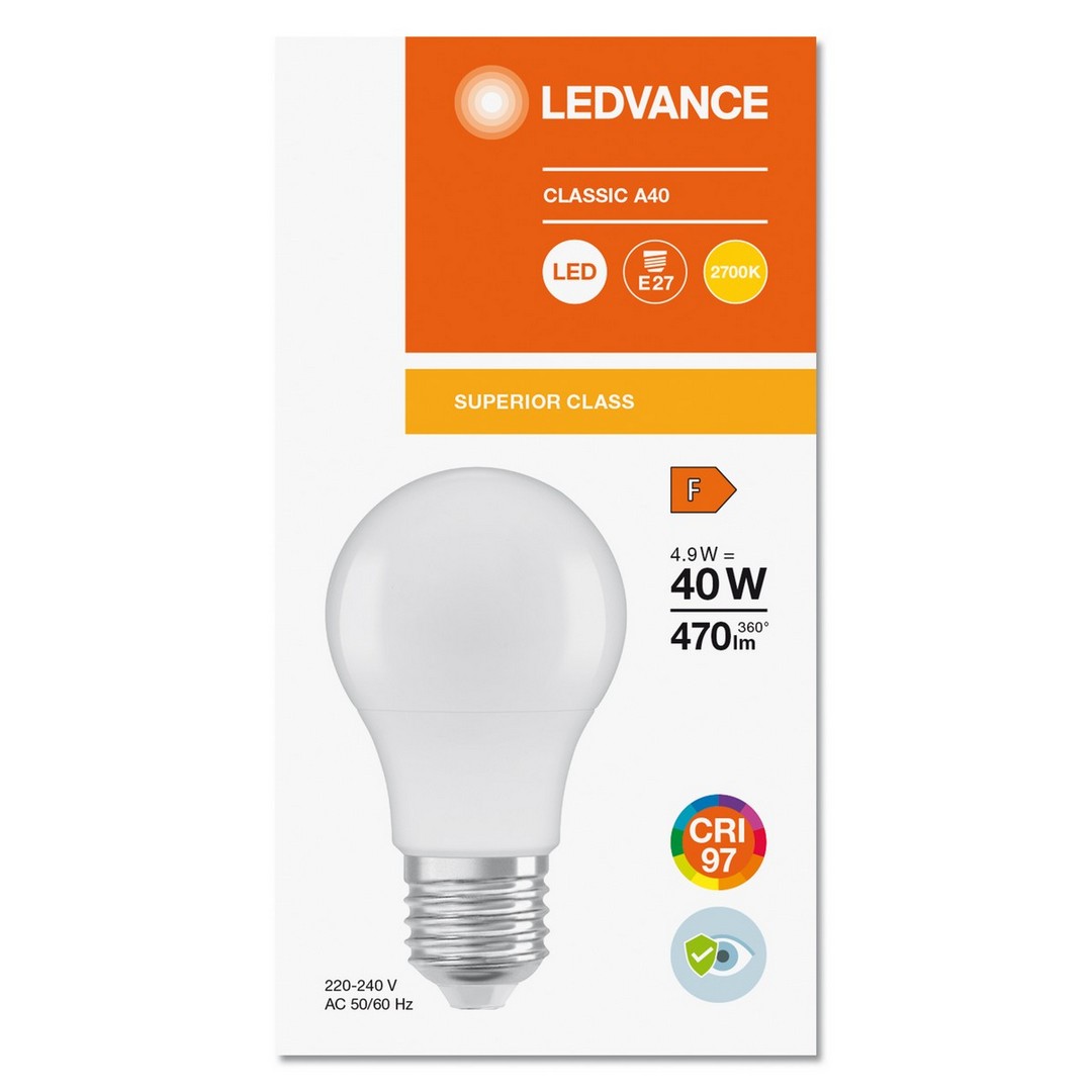 Plnospektrální LED žárovka Ledvance E27 4,9W 2700K