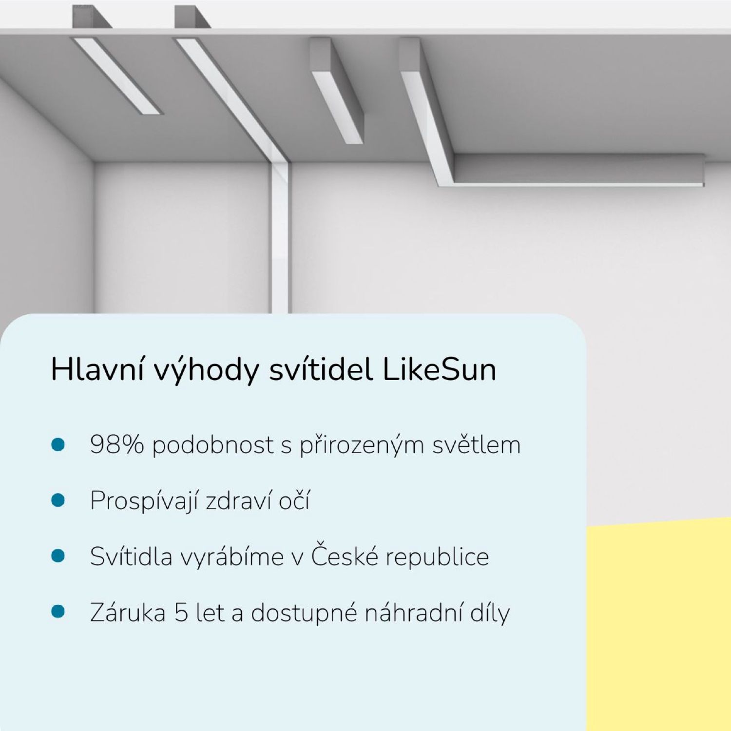 Plnospektrální, biodynamické svítidlo LikeSun N-C vás na první pohled zaujme svou jednoduchostí a elegantním designem. Můžete ho snadno přisadit ke stropu, takže v prostoru nezabere moc místa a zajistí vám kvalitní zdravé osvětlení. Navíc je celkem univerzální a hodí se do každého moderního až seversky laděného domova. Líbit se mu bude v chodbách, kuchyních i kancelářích.