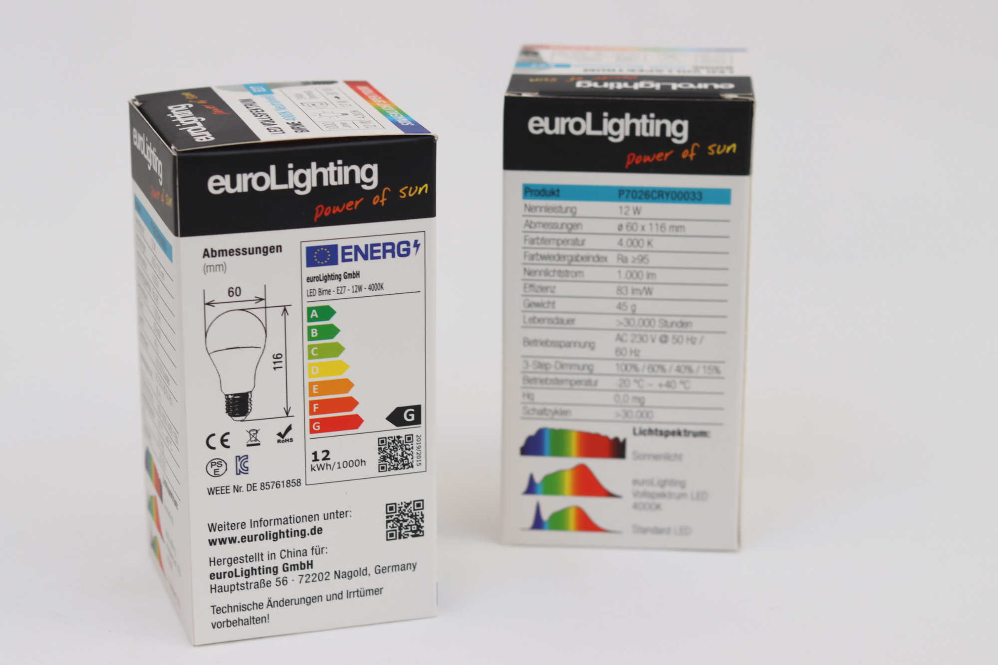 Plnospektrální LED žárovka euroLighting E27 12W 4000K
