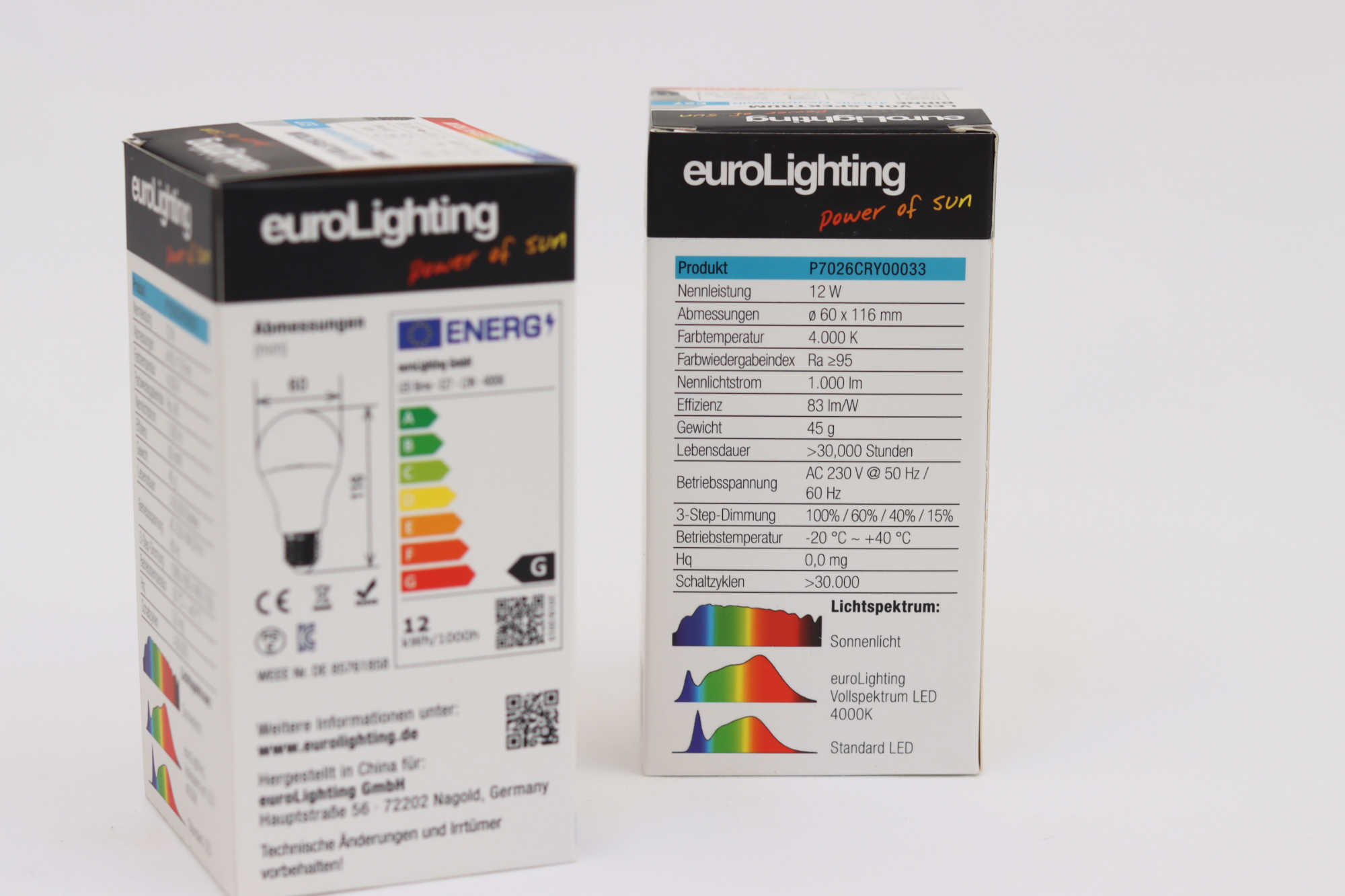 Světelné spektrum podobné slunečnímu záření našich LED žárovek má pozitivní vliv na člověka. Pomáhá například proti únavě oči, zlepšuje koncentraci, čímž napomáhá k vyšším pracovním výkonům a v neposlední řadě působí proti melancholii. V euroLighting LED žárovkách jsou totiž integrovány speciální světelné diody imitující denní světlo. Díky tomu vypadají předměty pod vyzařovaným světlem ze žárovek podobně jako pod denním světlem. Barvy jsou tedy plné, saturované a příjemné.