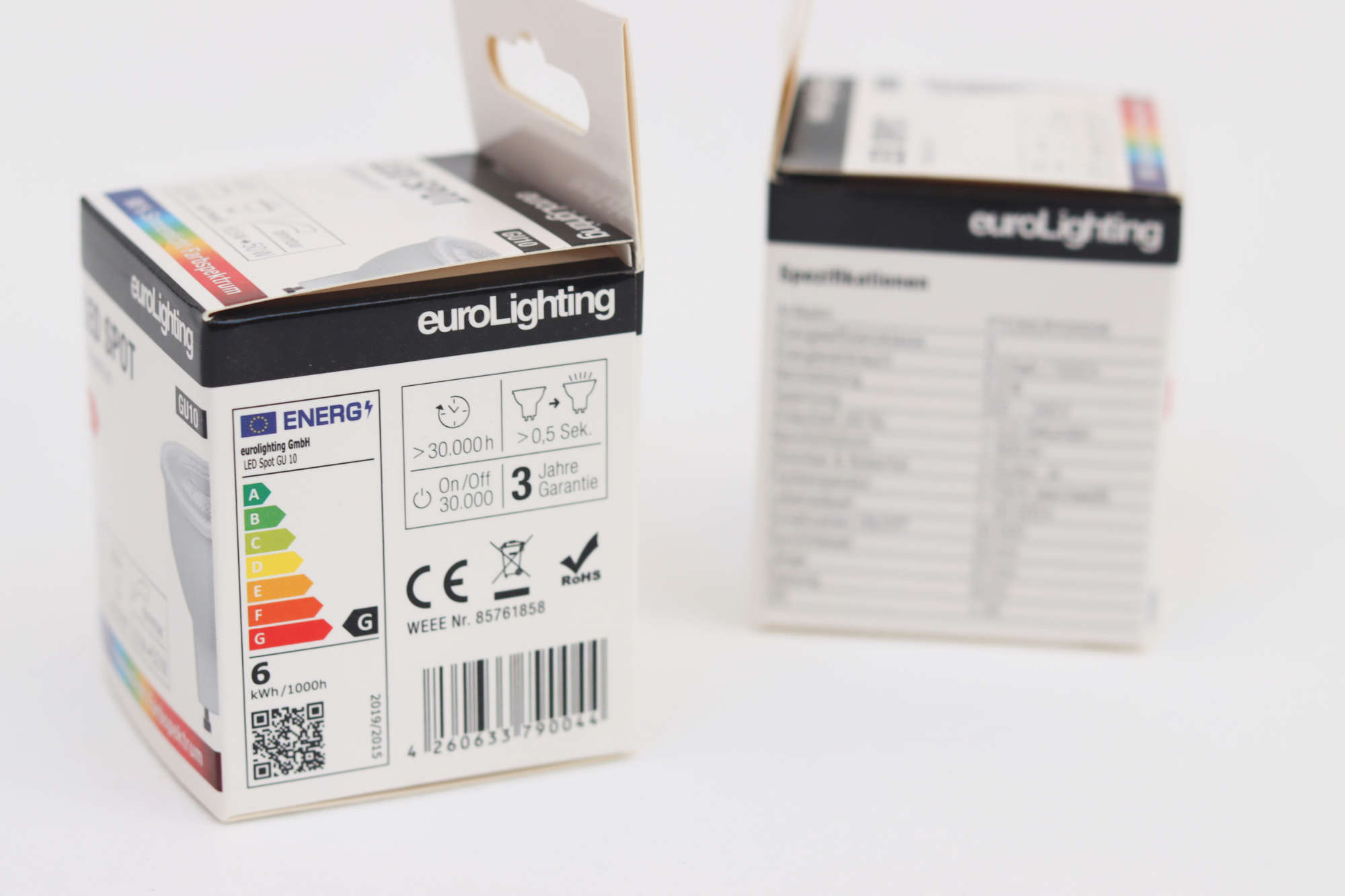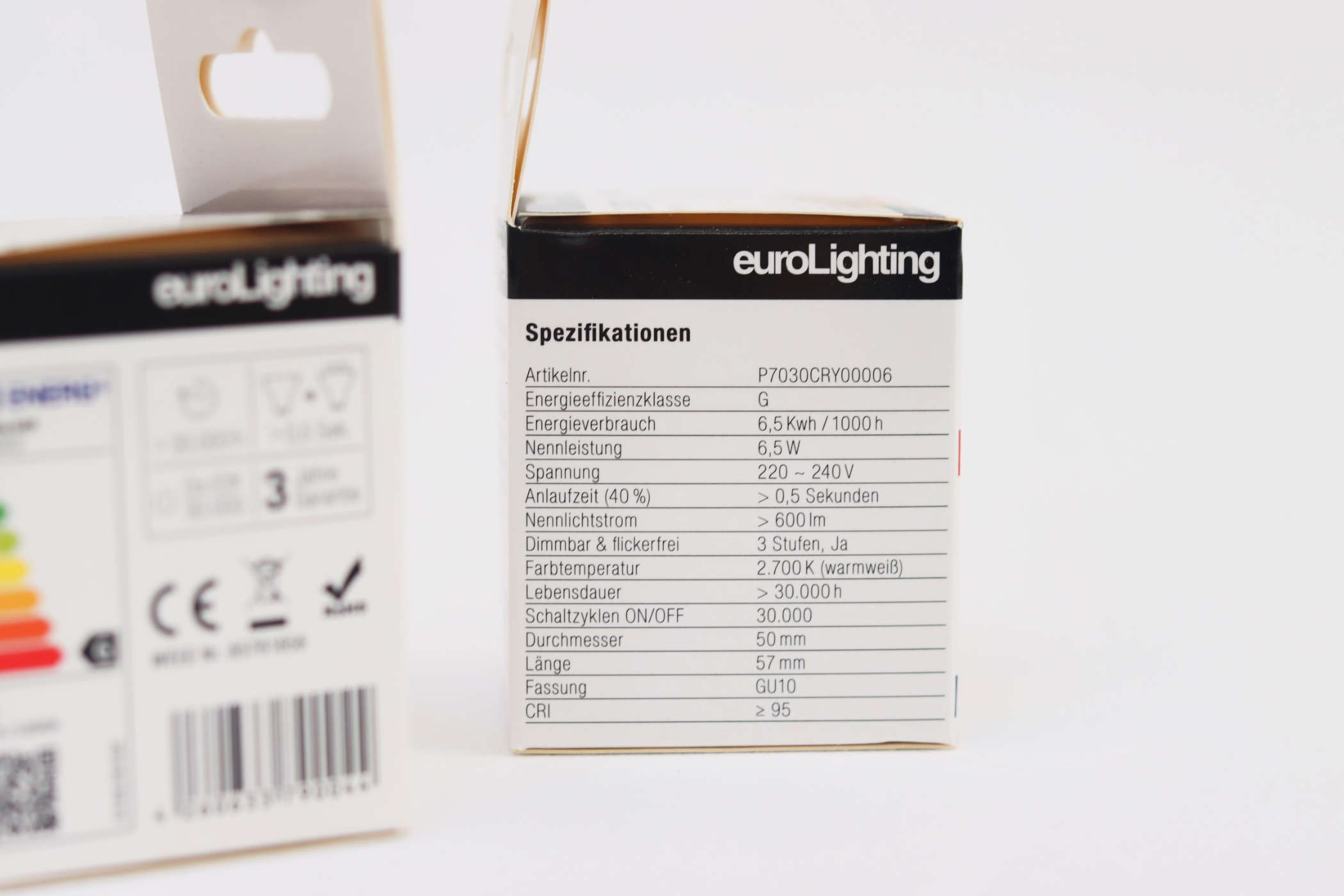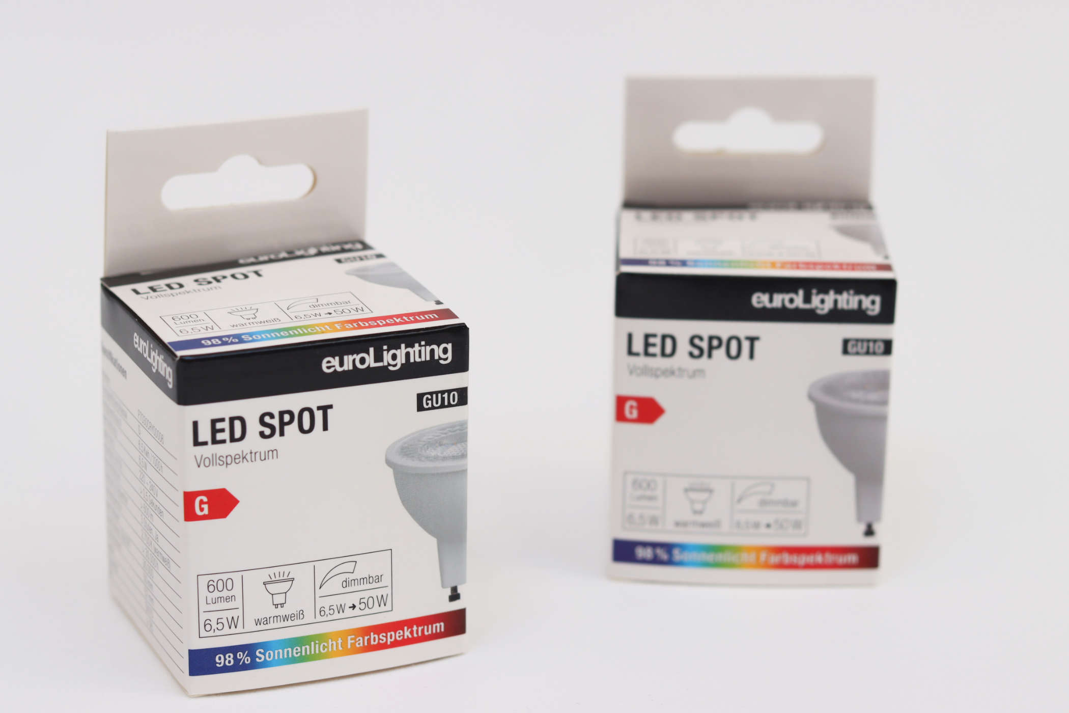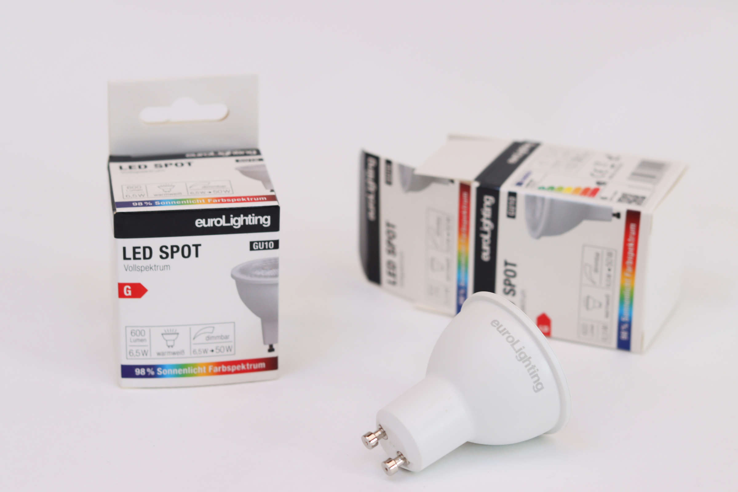 Plnospektrální LED žárovka euroLighting GU10 6,5W 2700K