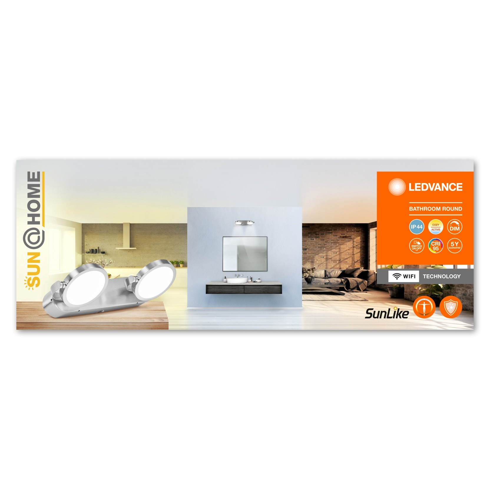 Koupelna se řadí mezi místnosti s největší vlhkostí v našem domově. Proto má svítidlo do koupelny SUN@Home vyšší stupeň krytí IP 44, díky kterému se eliminuje riziko vniknutí stříkající vody a prodlužuje životnost. Zajímá vás, v jakých místnostech byste měli použít svítidla podle stupně krytí IP? Přečtěte si náš blogový článek “Do jakých prostorů si pořídit svítidlo s vyšším stupněm krytí IP?”.