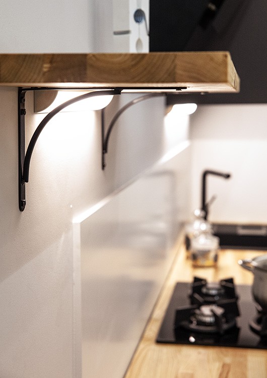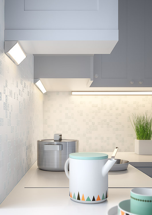 - Pokud chcete LED páskem nasvítit kuchyňskou linku, nemusíte si pořizovat profil nebo pásek ve verzích s vyšším stupněm krytí IP, neboť použití difuzoru a hliníkové lišty vytvoří dostatečnou ochranu proti vniknutí vody do svítidla.