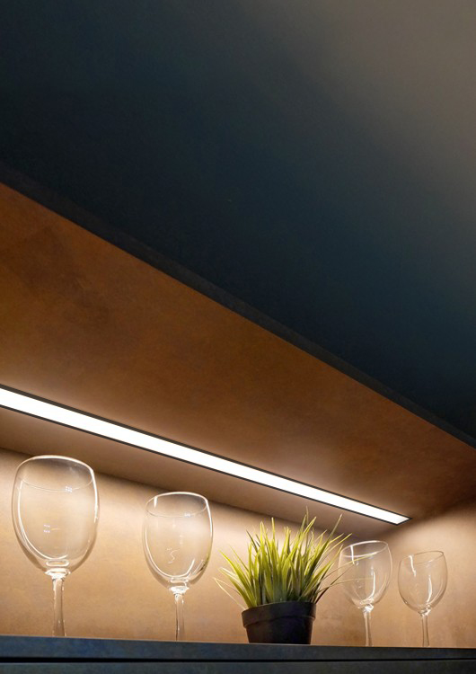 - Pokud chcete LED páskem nasvítit kuchyňskou linku, nemusíte si pořizovat profil nebo pásek ve verzích s vyšším stupněm krytí IP, neboť použití difuzoru a hliníkové lišty vytvoří dostatečnou ochranu proti vniknutí vody do svítidla.