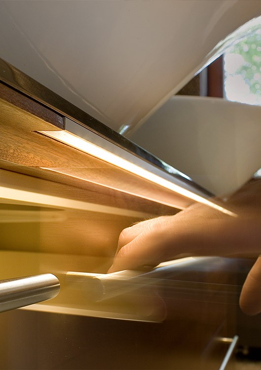 - Pokud chcete LED páskem nasvítit kuchyňskou linku, nemusíte si pořizovat profil nebo pásek ve verzích s vyšším stupněm krytí IP, neboť použití difuzoru a hliníkové lišty vytvoří dostatečnou ochranu proti vniknutí vody do svítidla.