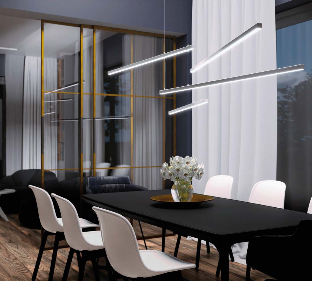 – může být vybaven difuzory – čirými nebo mléčnými, plastovými záslepkami v barvě hliníku nebo metalickými a napájecími záslepkami