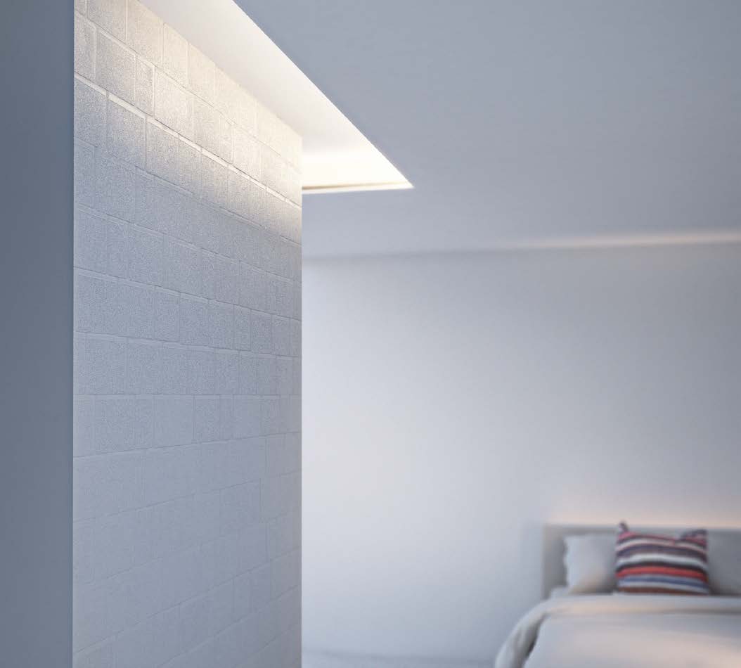 Při použití mléčných difuzorů v kombinaci s našimi LED pásky, které mají počet diod na metr vždy 120 a více, dosáhnete souvislé světelné linie bez viditelných bodu z jednotlivých diod. Pokud ale tento efekt požadujete, použijte čirý difuzor, který světlo nerozptyluje.