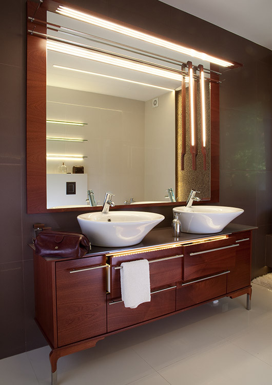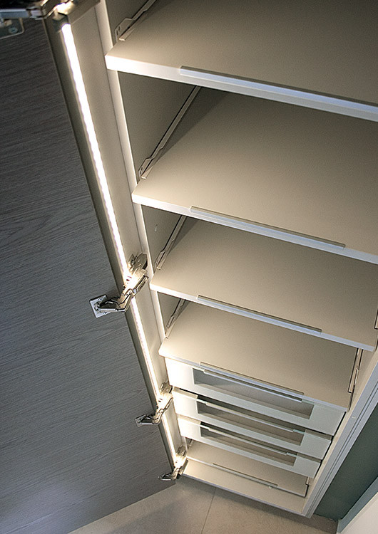 - Pokud chcete LED páskem nasvítit kuchyňskou linku, nemusíte si pořizovat profil nebo pásek ve verzích s vyšším stupněm krytí IP, neboť použití difuzoru a hliníkové lišty vytvoří dostatečnou ochranu proti vniknutí vody do svítidla.