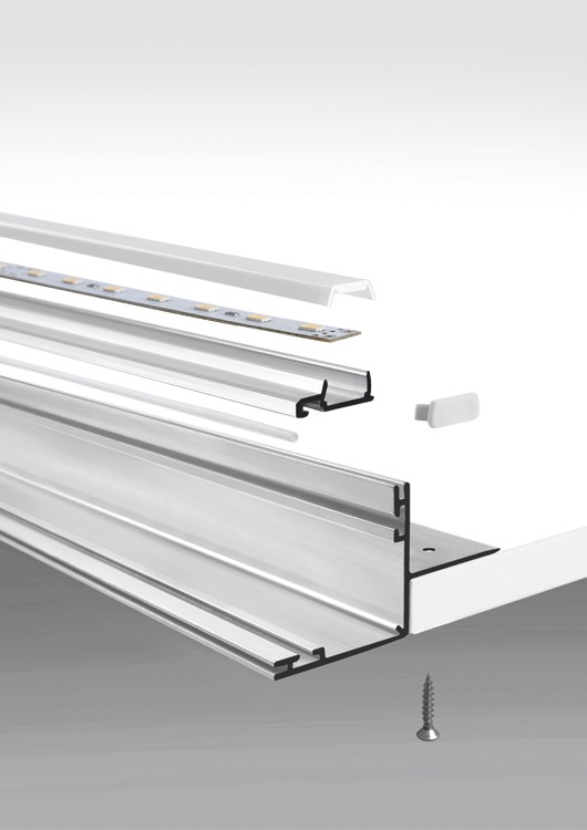 – profil se skládá z montážní profilové části, světelné profilové části a silikonové šňůry
