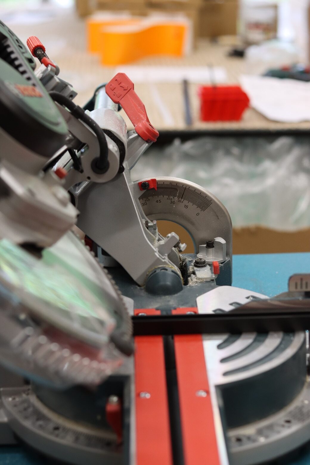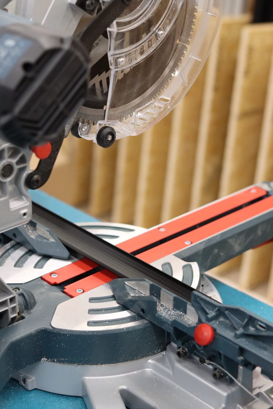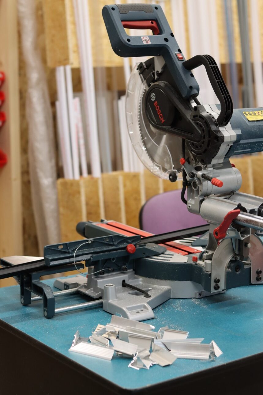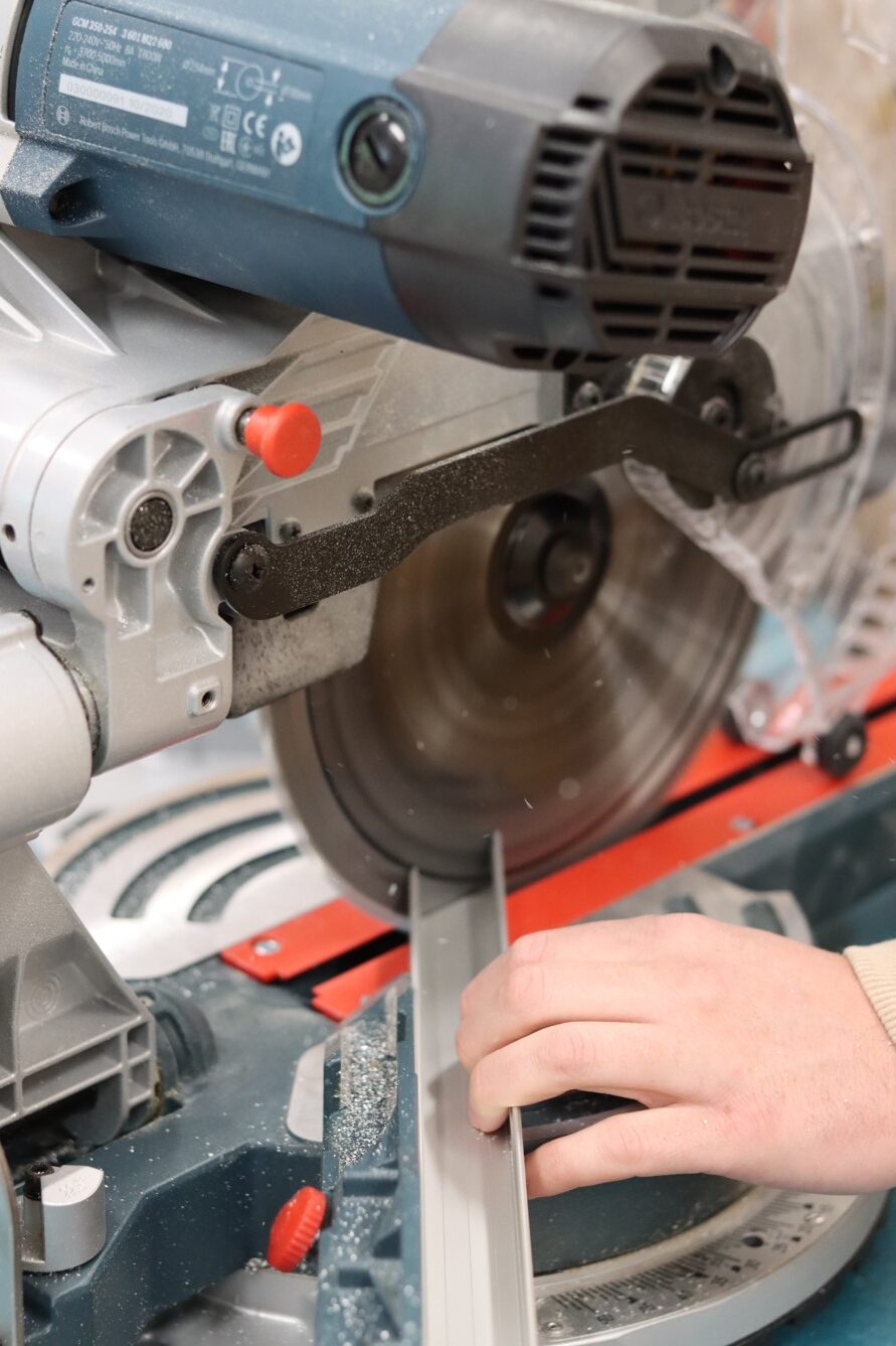 Rovné i úhlové řezy provádíme na profesionálním vybavení, které zaručuje správnou rovinnost plochy řezu a žádné otřepy po řezání. Řežeme na pokosové pile kotoučem určeným pro řezání hliníkových lišt.