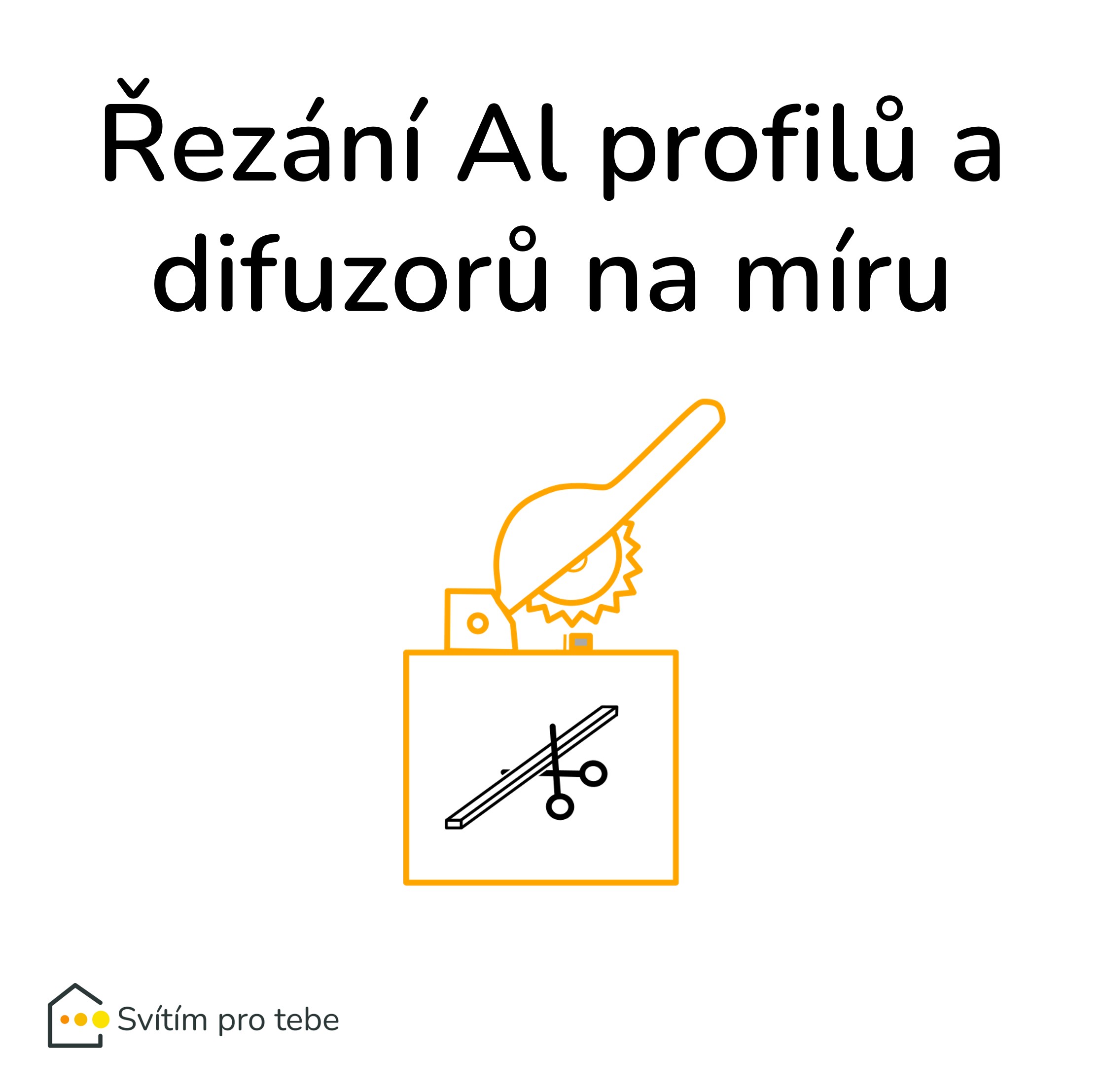 Přidejte si k objednávce službu “Řezání Al profilu a difuzoru na míru” a my vám nařežeme profil nebo difuzor přesně dle Číst vícevašich požadavků.