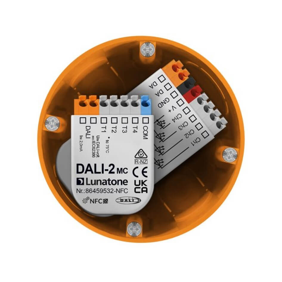 Řídící modul DALI-2 MC (86459532-2-int) slouží pro ovládání osvětlení v síti DALI-2. Připojení až 4 tlačítek. Umožňuje ovládání jasu a teploty bílého Číst vícesvětla. Provedení do instalační krabice.