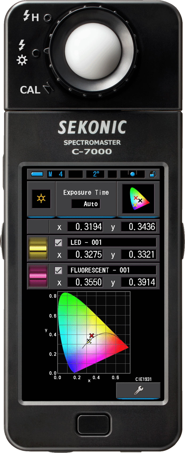 Sekonic C-7000 měří LED, HMI, fluorescenční zdroje světla, denní světlo i světelné záblesky s krokem 1 nanometr (nm) v rozsahu od 380 do 780 nm viditelné částí elektromagnetického záření. Odpovídá požadavkům normativních dokumentů JIS C 1609-1: 2006 “Illuminance meters Part 1: General measuring instruments” Class A a DIN 5032 Part 7 Class C.