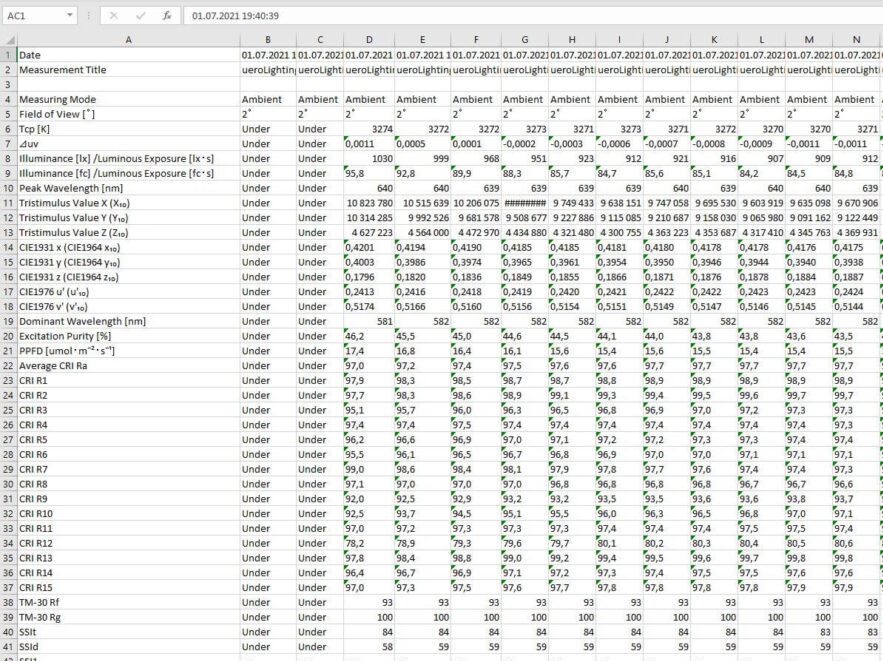 Ruční přenosný spektroradiometr a expozimetr Sekonic C-7000 je určený pro použití v odvětí průmyslového osvětlování. V naši společnosti používáme Sekonic C-7000 jako měřící nástroj pro kontrolu LED světelných zdrojů a jejich kvality, ověřování realizovaných instalací interiérového osvětlení a provádění certifikovaných měření umělého i sdruženého osvětlení. Jako výhody spektroradiometru Sekonic C-7000 vidíme jednoduché a pohodlné ovládání pomocí velkého dotykového displeje, otočnou měřící hlavu, velký měřící rozsah (1 – 200 000 lx), malý krok měření (1 nm), jednoduchou a uživatelsky nastavitelnou interpretaci fotometrických a kolorimetrických veličin a napájení pomocí dvou tužkových 1,5 V AA baterií. To oceňujeme z důvodu že, když Vám kdykoliv a kdekoliv během měření dojde energie baterií, nemusíte čekat na dobití přístroje, ale stačí pouze vyměnit dvě baterie a můžete pokračovat ve Vašem měření. Velmi praktickým pomocníkem se nám při používání spektroradiometru stal také doplňek pro software EXCEL, který umožňuje přímé propojení C-7000 se softwarem a možnost kontinuálního měření. Doplněk pro EXCEL je pro nás praktický zejména při měření denního světla, východu a západu Slunce nebo útlumu světelného zdroje, kdy využíváme možnost automatického měření s nastavením počtu měření a intervalu. Vše si pečlivě nastavíme a C-7000 pak automatický měří bez další přítomnosti dle zadaných vstupních podmínek.