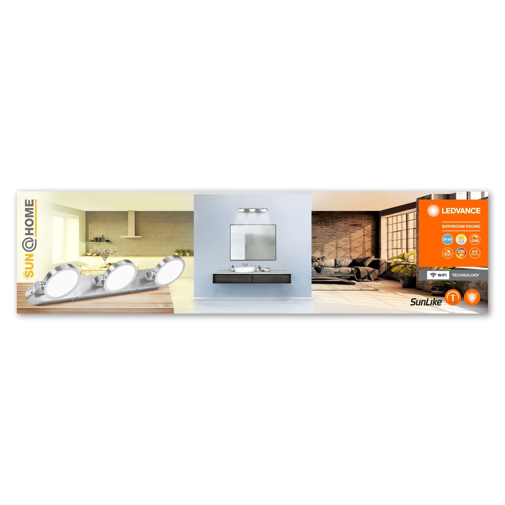 Koupelna se řadí mezi místnosti s největší vlhkostí v našem domově. Proto má svítidlo do koupelny SUN@Home vyšší stupeň krytí IP 44, díky kterému se eliminuje riziko vniknutí stříkající vody a prodlužuje životnost. Zajímá vás, v jakých místnostech byste měli použít svítidla podle stupně krytí IP? Přečtěte si náš blogový článek “Do jakých prostorů si pořídit svítidlo s vyšším stupněm krytí IP?”.
