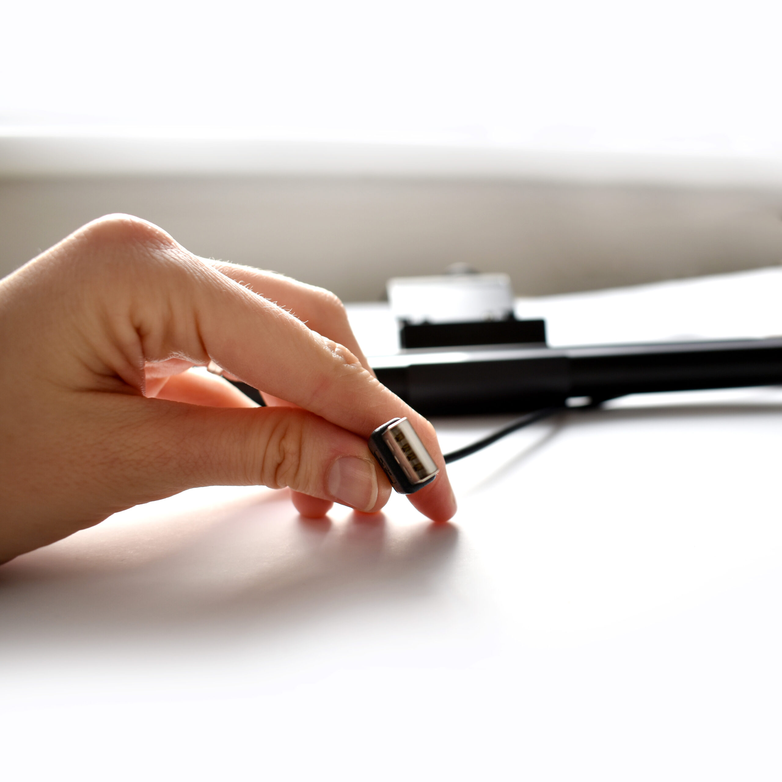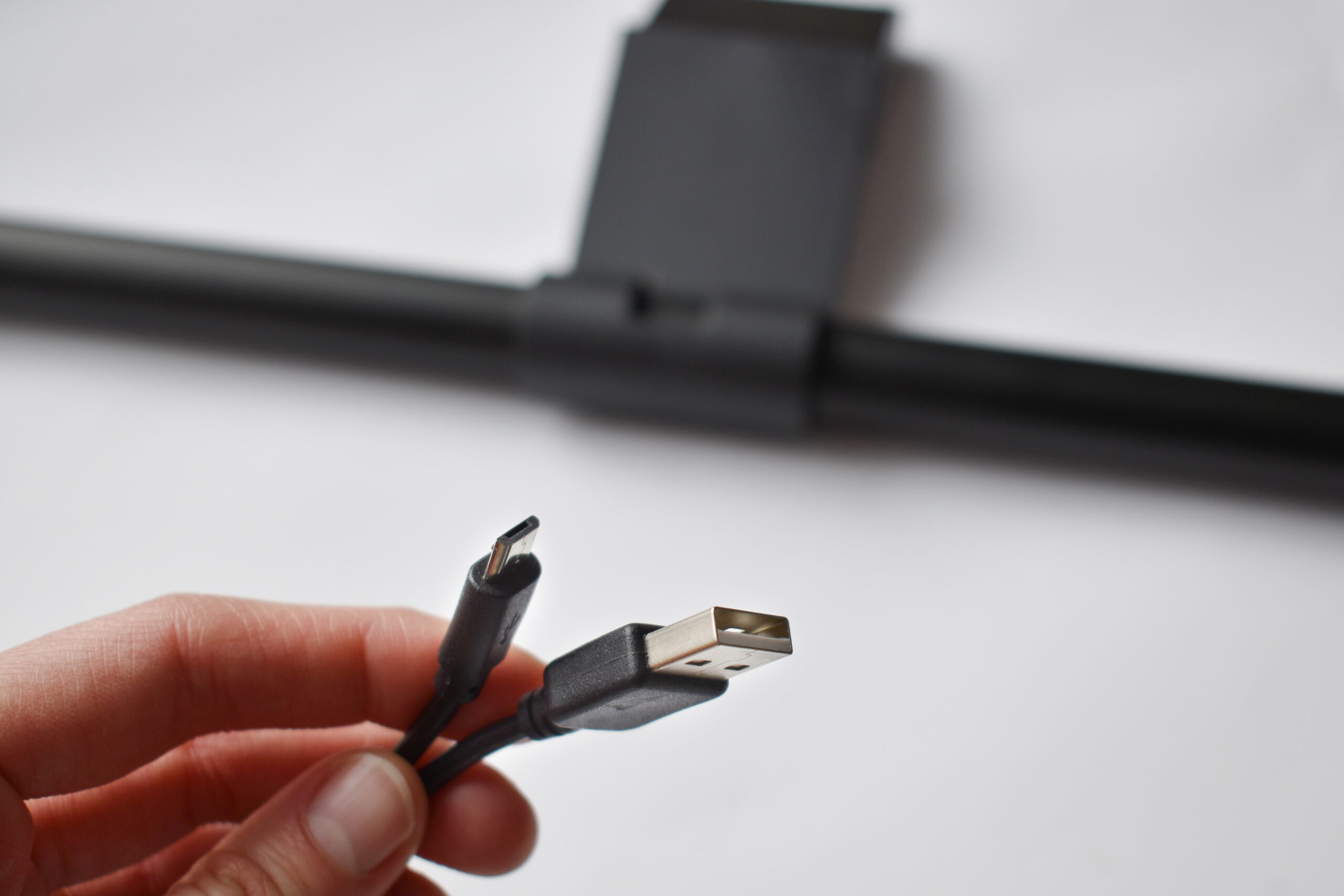 Svítidlo má robustní a silnou úchytku (na fotce vlevo), takže nebudete mít problém s přichycením malé lampy na kterýkoliv monitor nebo notebook. Součástí balení je USB kabel (na fotce vpravo), kterým propojíte svítidlo na monitor s vaším notebookem či PC. Nemusíte jej tedy zapojovat do zásuvky a uvolníte tím místo pro další elektroniku.